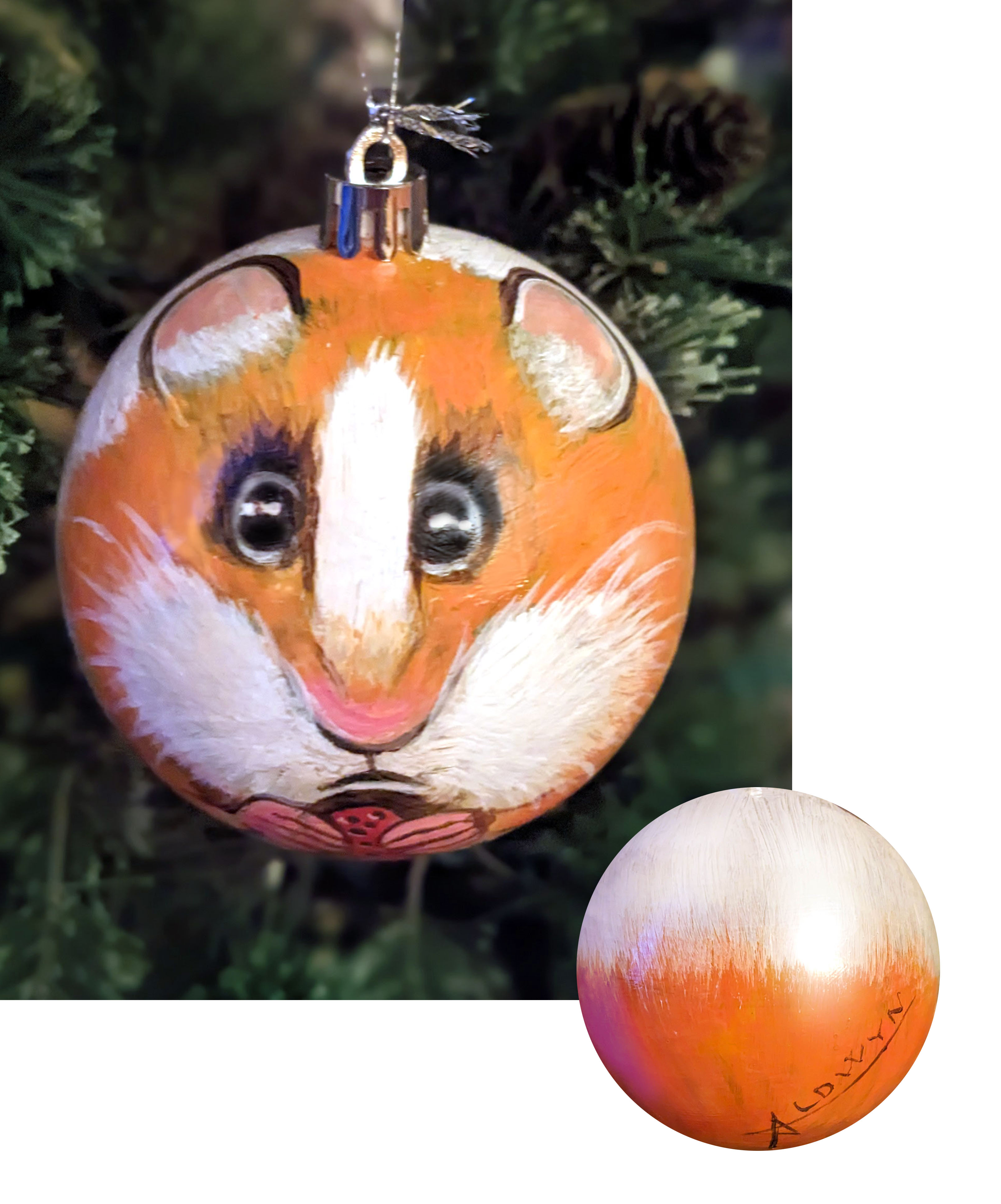 One-of-a-kind, keepsake collectibles. Fine acrylics, finished with varnish, are used to paint unique, whimsical designs. If you’d like a portrait of a loved one, I can work from the photographs you provide. An attractive gift box with ribbon is provided for each ornament.
