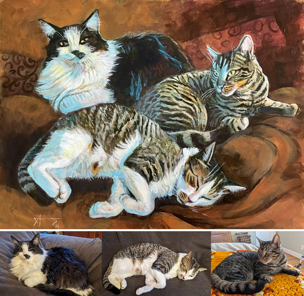 From avatars to simple animated gifs (no sound) to elaborate stories (mov or mp4 file) complete with voices, music and sound effects, I can bring your pets to life making digital paintings from your pictures and using recordings of your voices. This is what I did with my family (we are spread out coast to coast) during the pandemic. Contact me to discuss and I’ll draw up a quote.